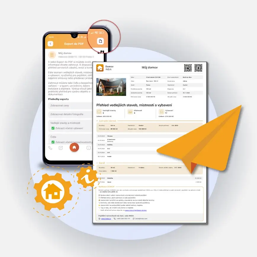 Pokud už máte v aplikaci uložené vaše nemovitosti či domácnosti, nabízí se nová praktická funkce Export do PDF. Výsledkem je profesionálně připravený PDF dokument, který můžete snadno uložit, vytisknout nebo poslat e-mailem. Hodí se při jednání s pojišťovnou, při prodeji nemovitosti i jako osobní archiv všech detailů na jednom místě.